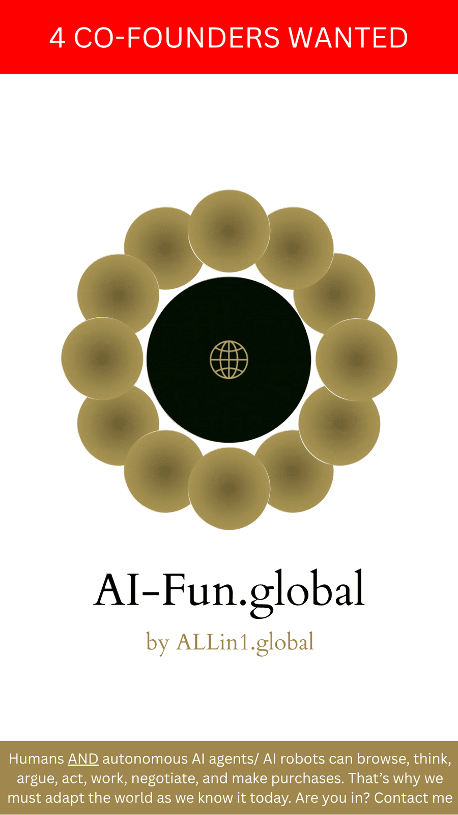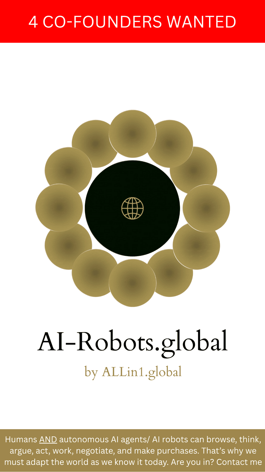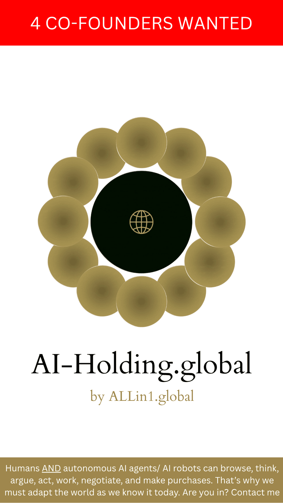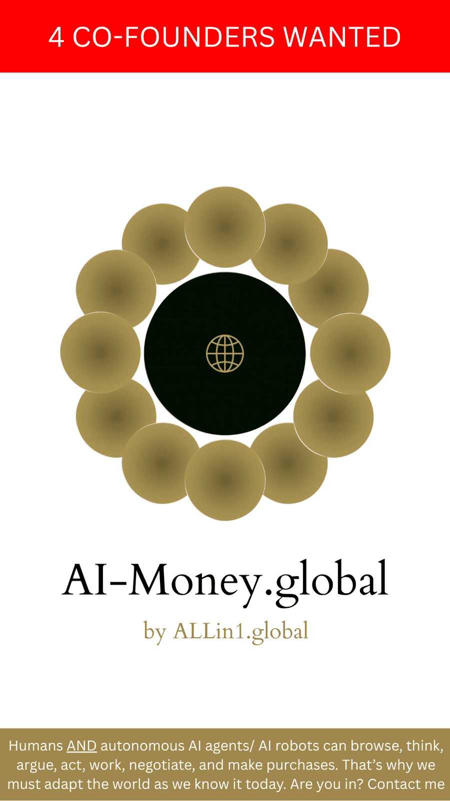 - The financing of well-being and prosperity is to be achieved primarily through AI agents (brain) and AI robots (brain & body), so that we humans (brain, body & soul) always have a choice and can devote ourselves to the beautiful aspects of life and work.