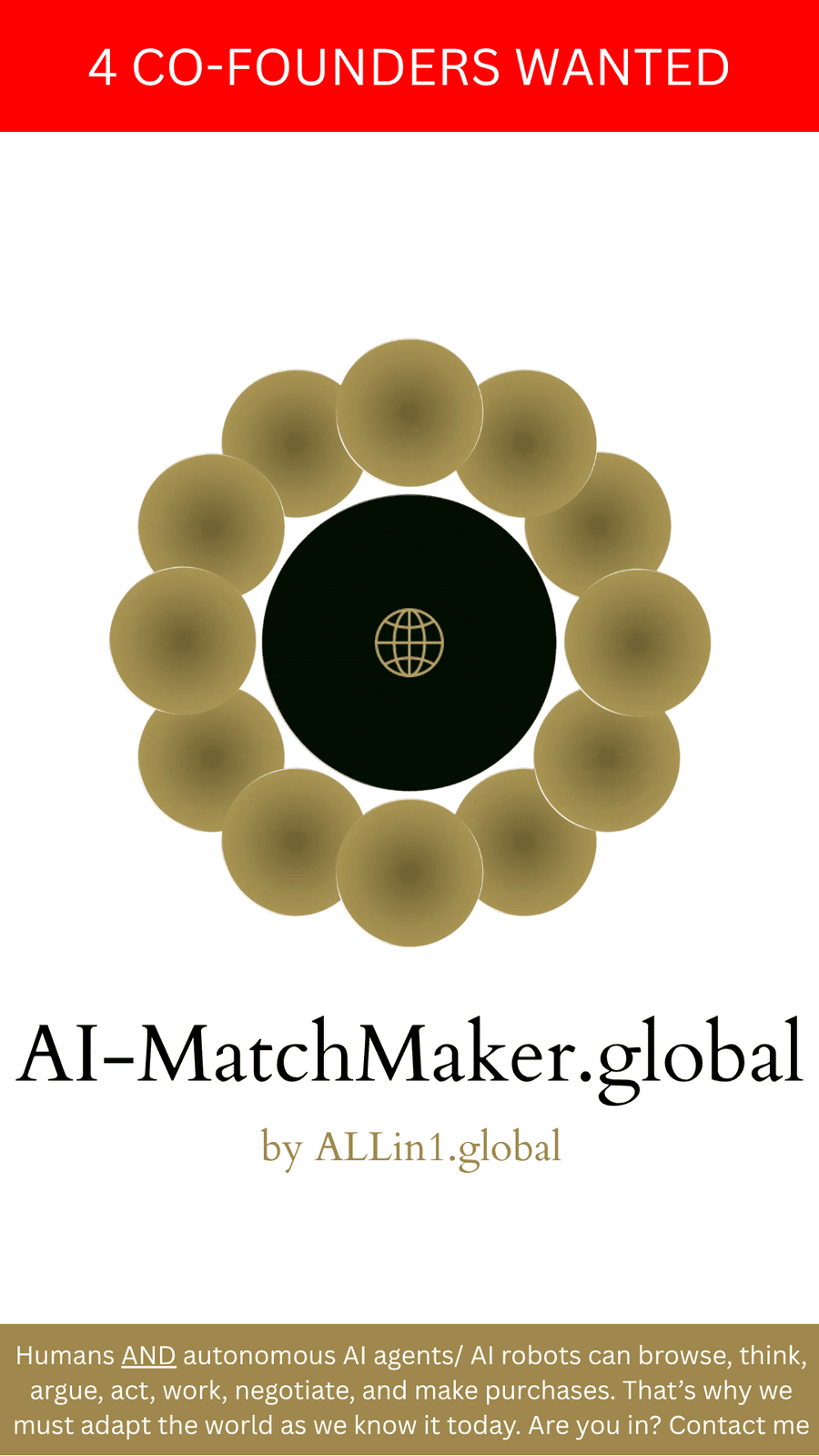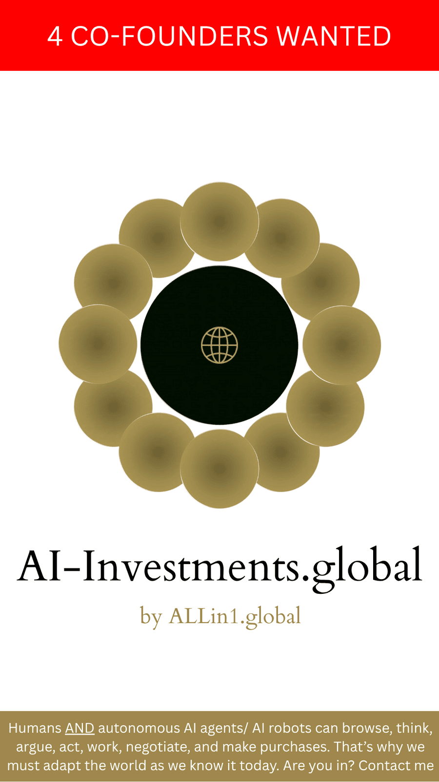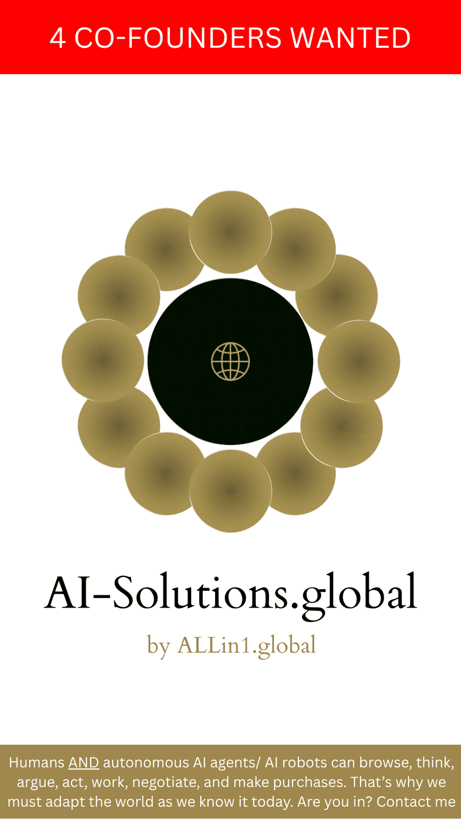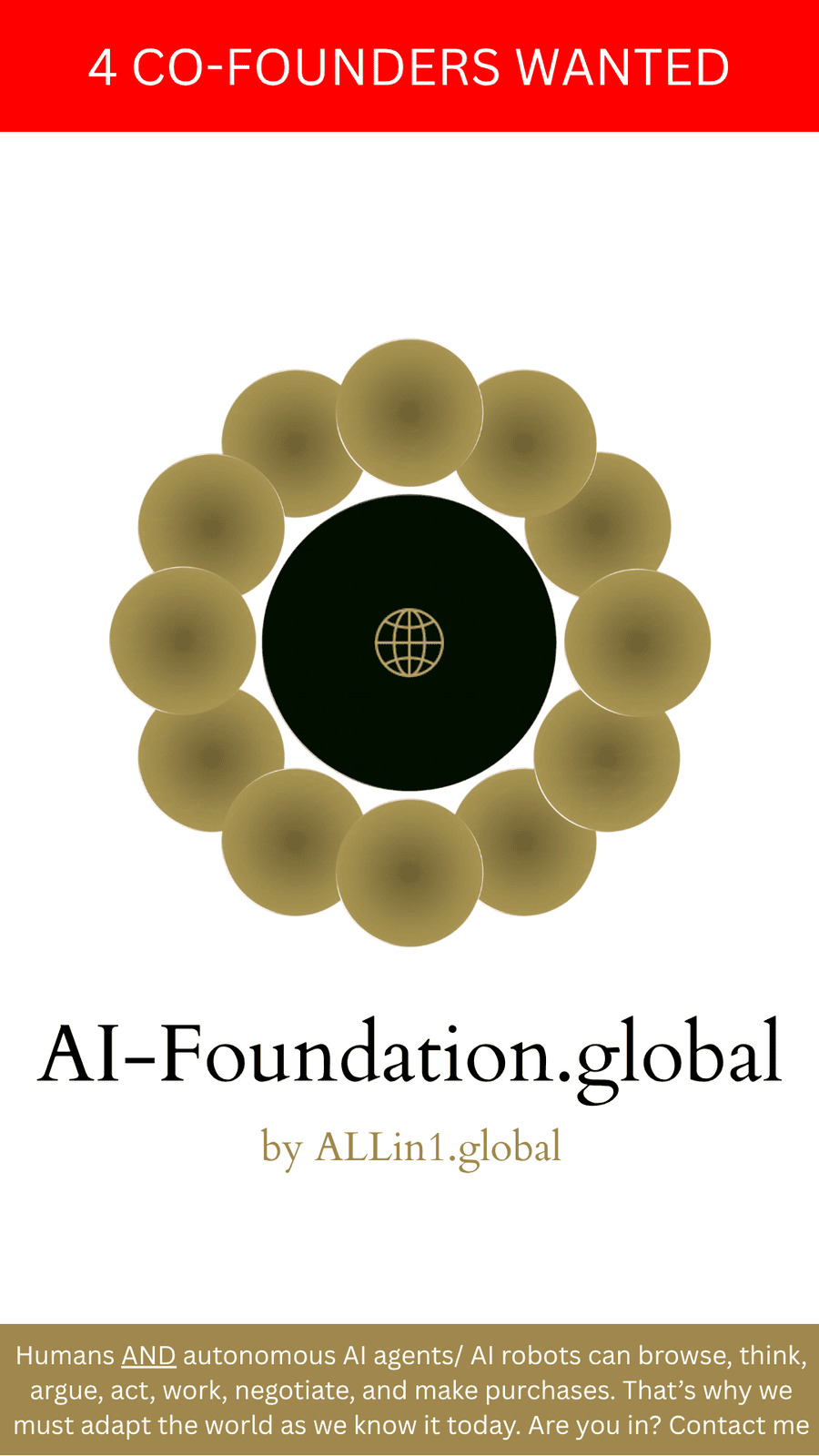 - The financing of well-being and prosperity is to be achieved primarily through AI agents (brain) and AI robots (brain & body), so that we humans (brain, body & soul) always have a choice and can devote ourselves to the beautiful aspects of life and work.