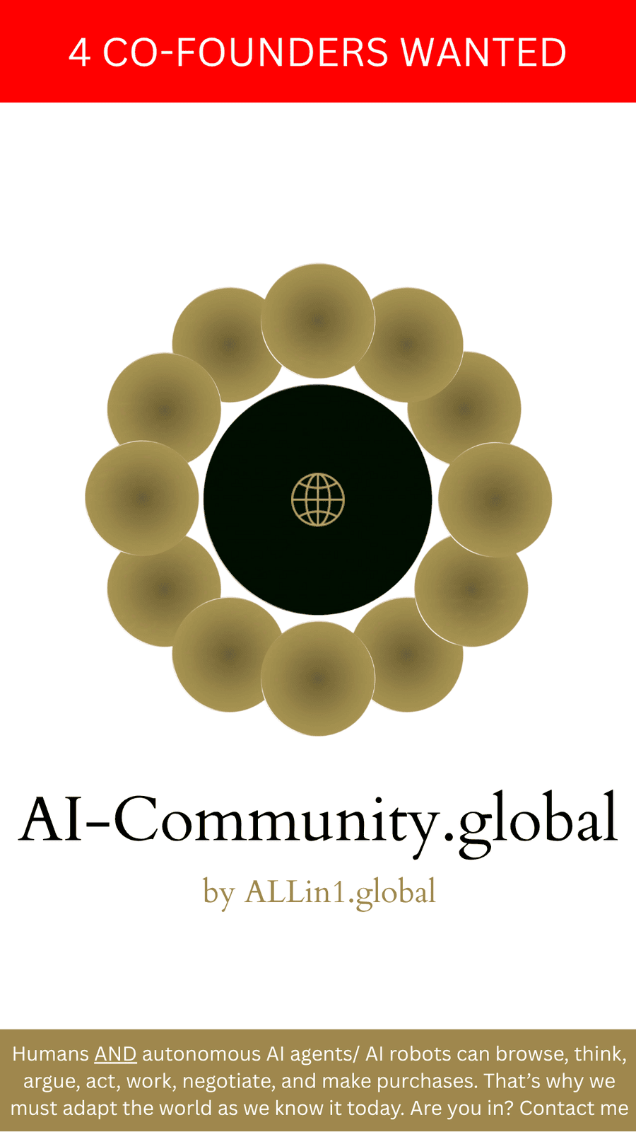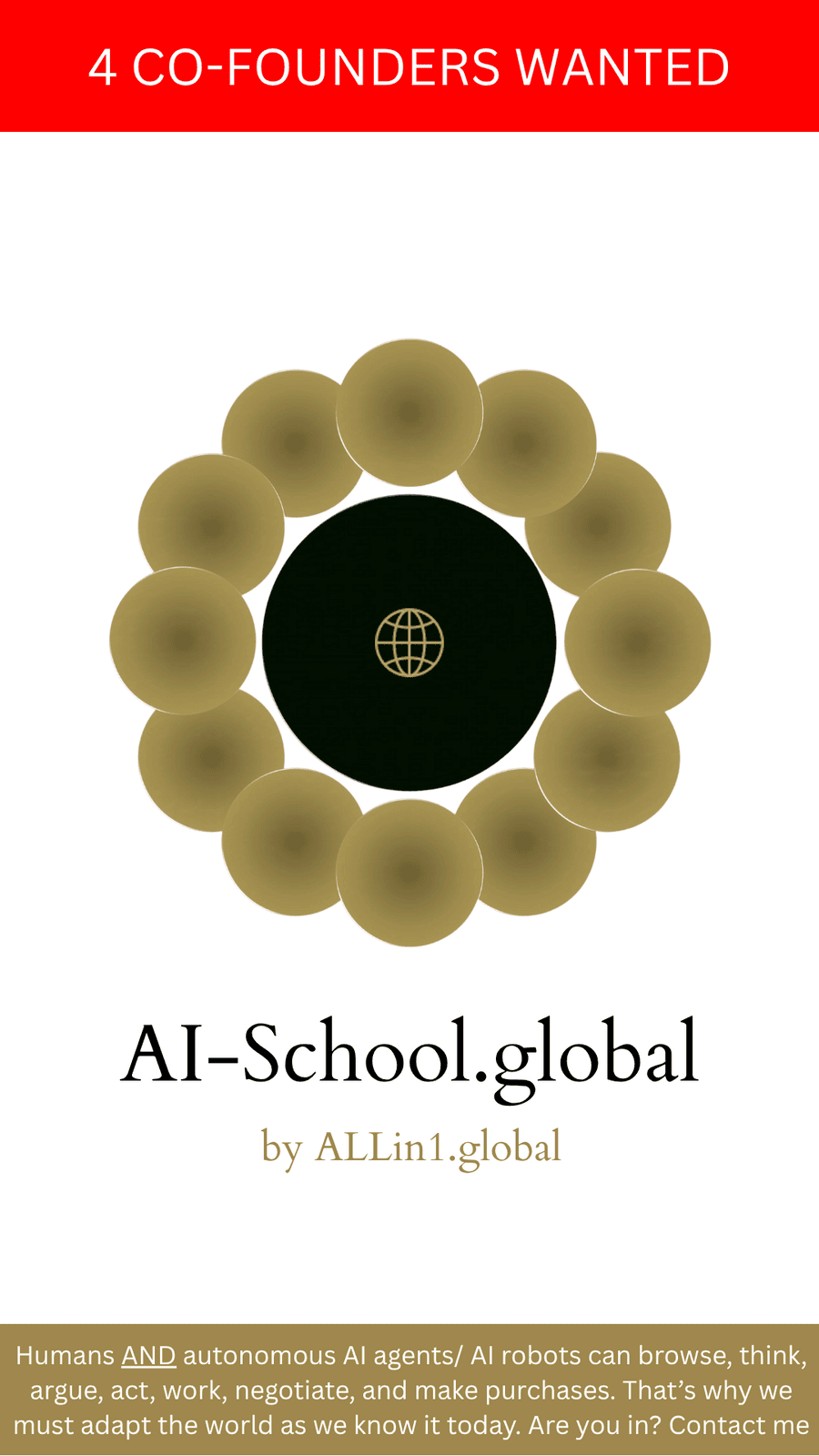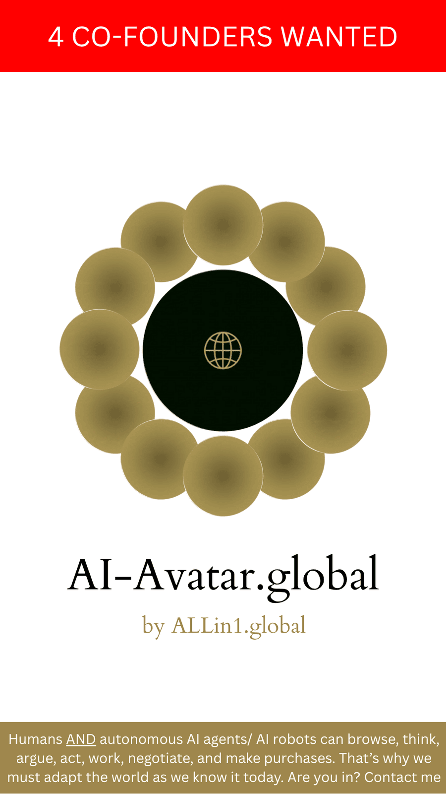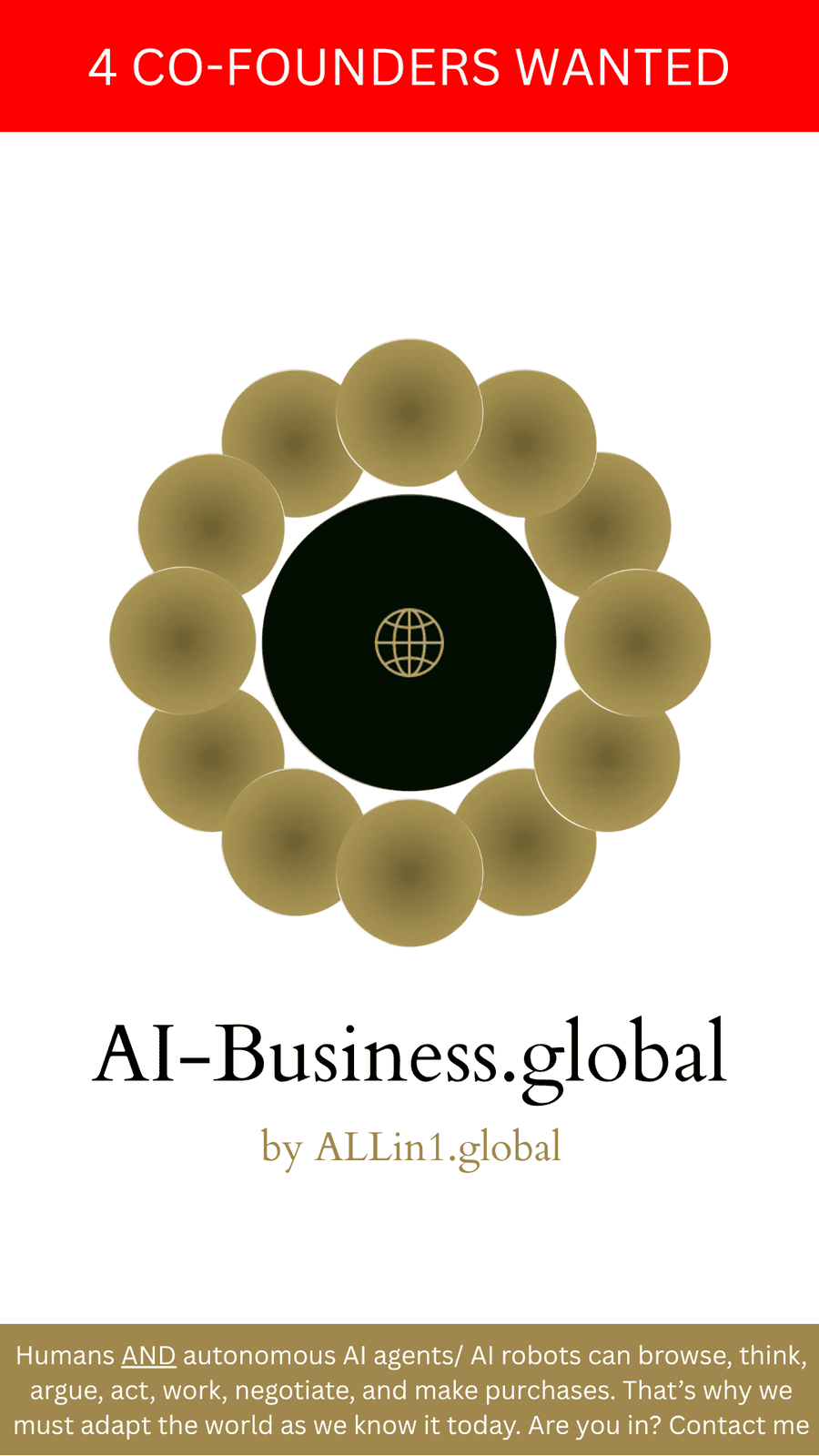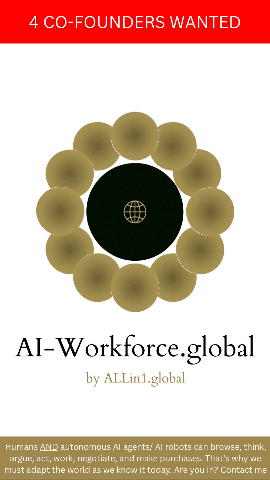 - The financing of well-being and prosperity is to be achieved primarily through AI agents (brain) and AI robots (brain & body), so that we humans (brain, body & soul) always have a choice and can devote ourselves to the beautiful aspects of life and work.