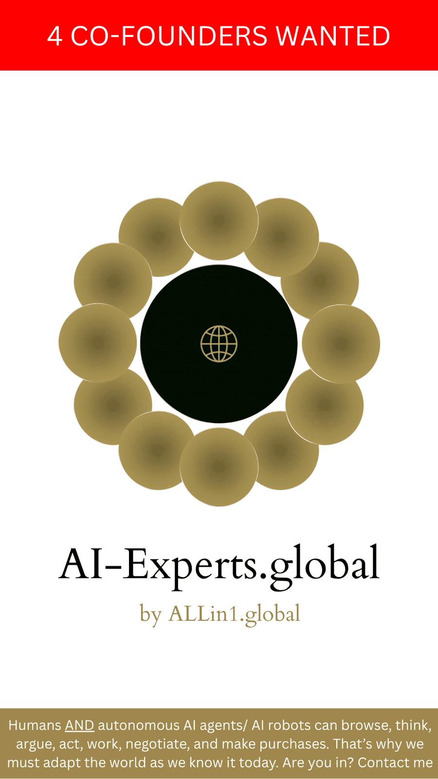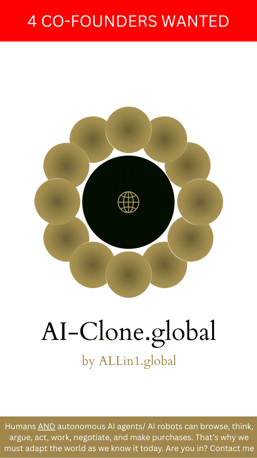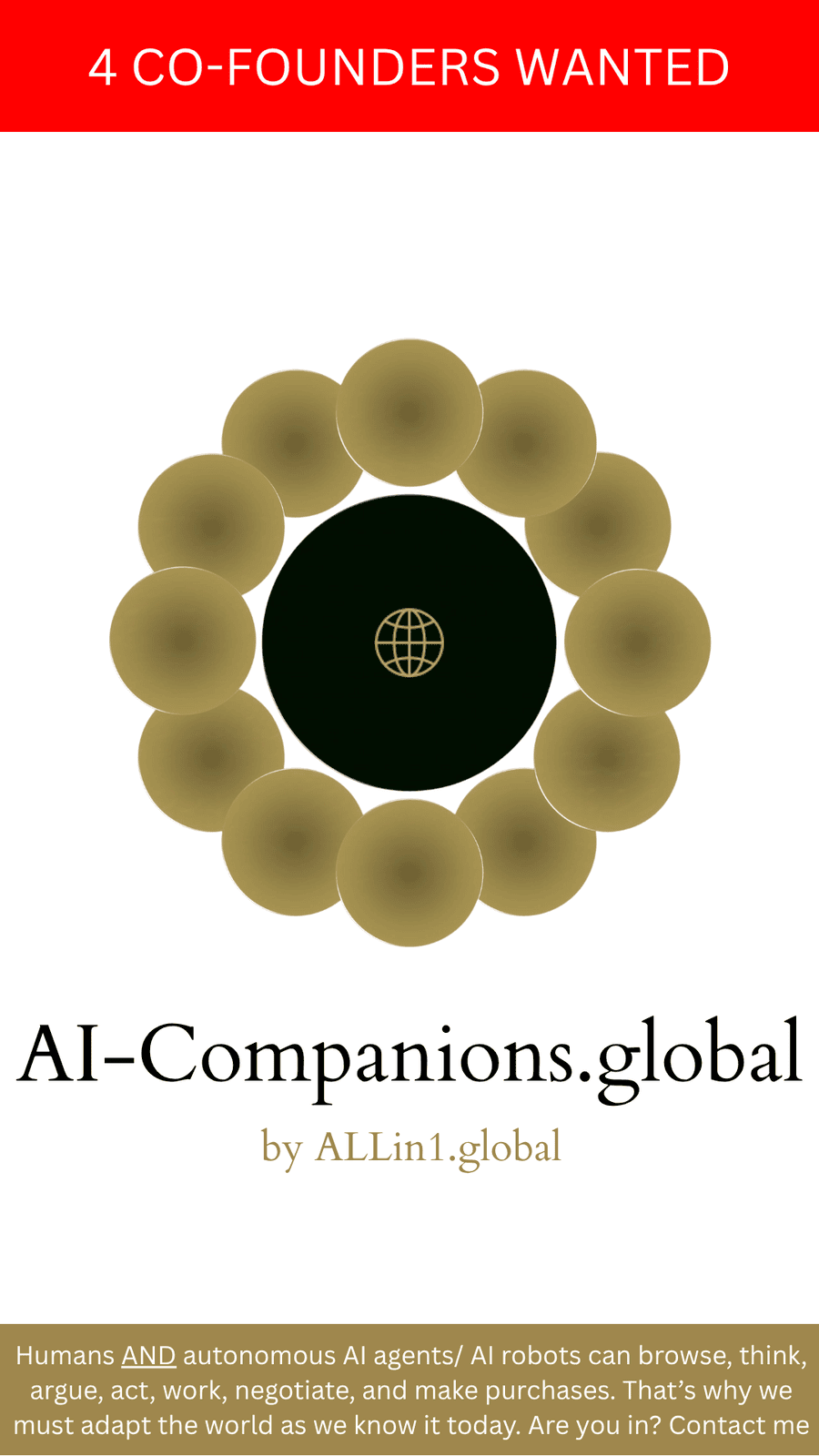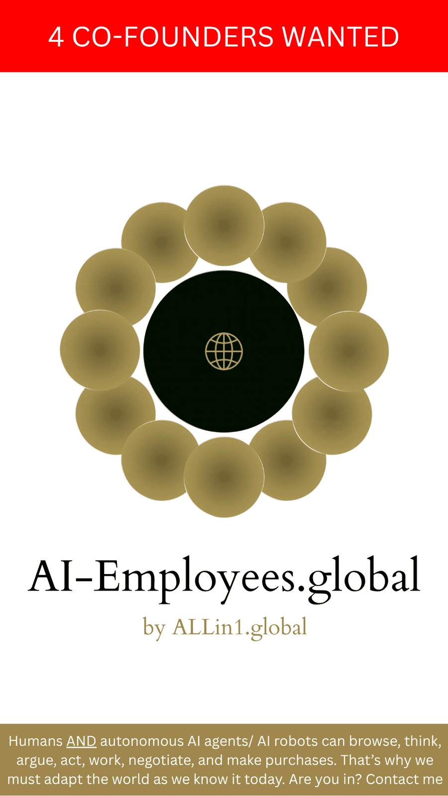 - The financing of well-being and prosperity is to be achieved primarily through AI agents (brain) and AI robots (brain & body), so that we humans (brain, body & soul) always have a choice and can devote ourselves to the beautiful aspects of life and work.